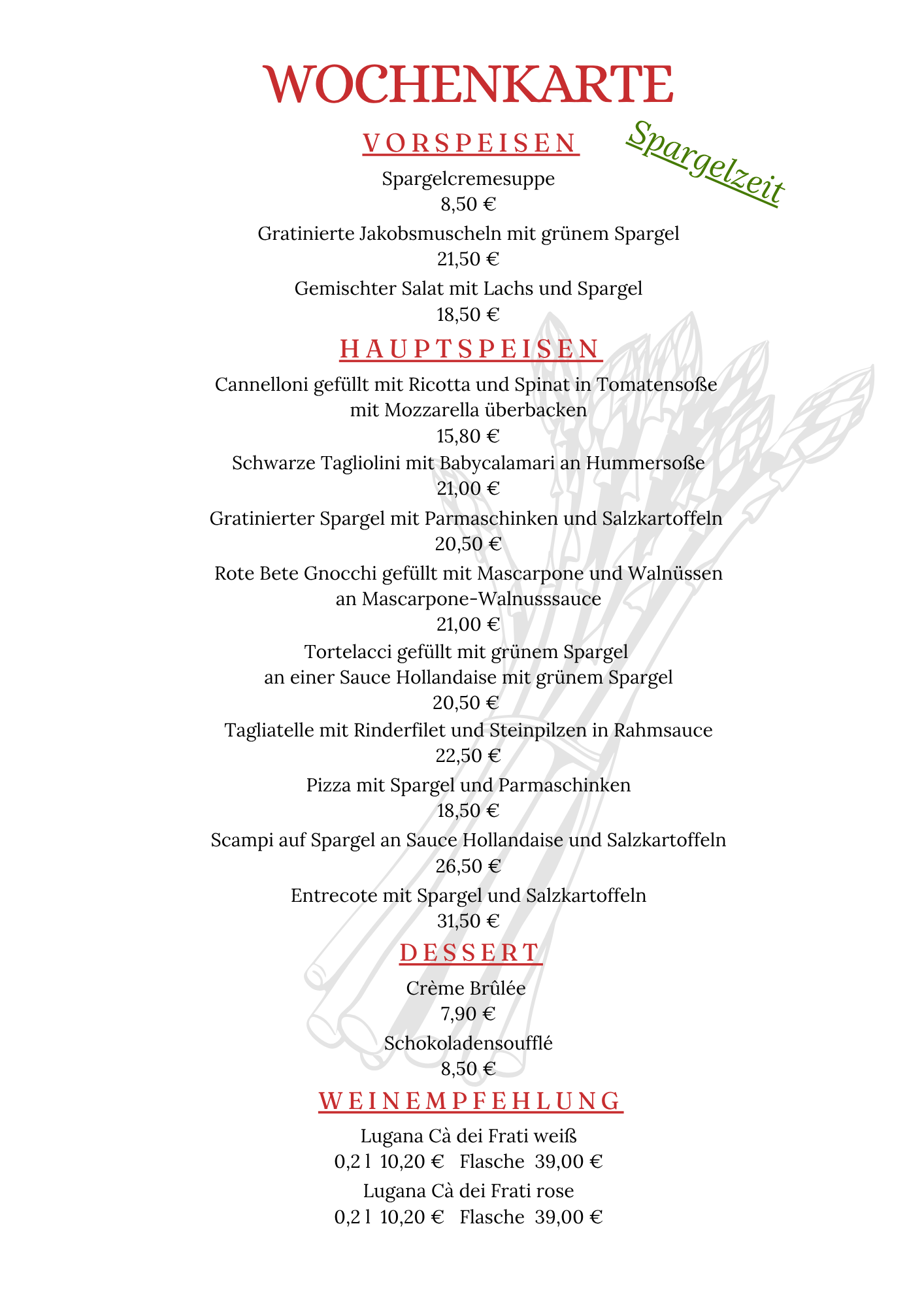 Für kurzfristige Reservierungen am selben Tag bitte anrufen.